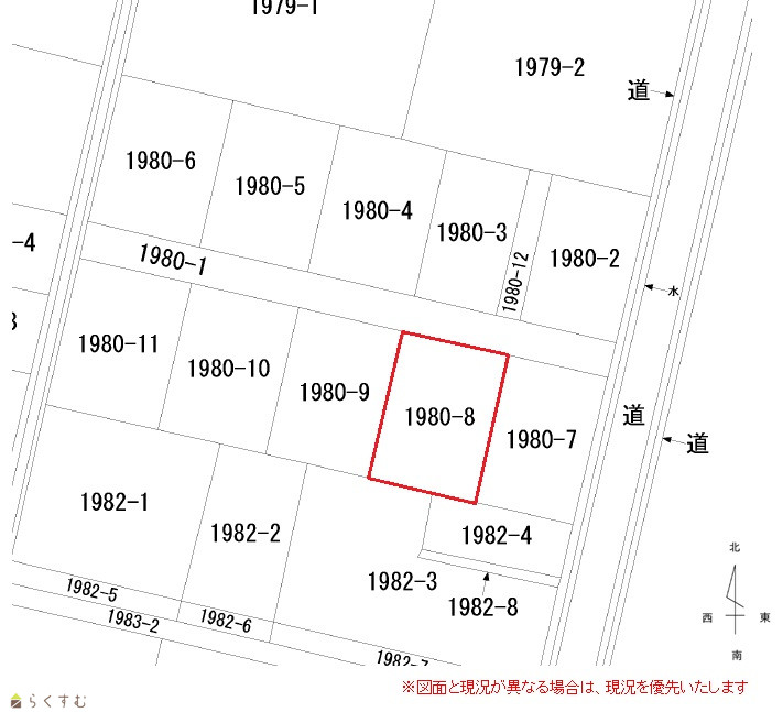 | 設備 | 整形地、学校近く、スーパー近く、建築条件なし、所有権、側溝、都市ガス(前面道路)、上水道(前面道路)、電気、下水道(宅地内)、住宅向け | ||