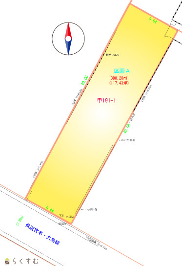 | 形状 | 間口 9.4m × 奥行 40m | 道路 | 南側公道約7.8m(融雪) |