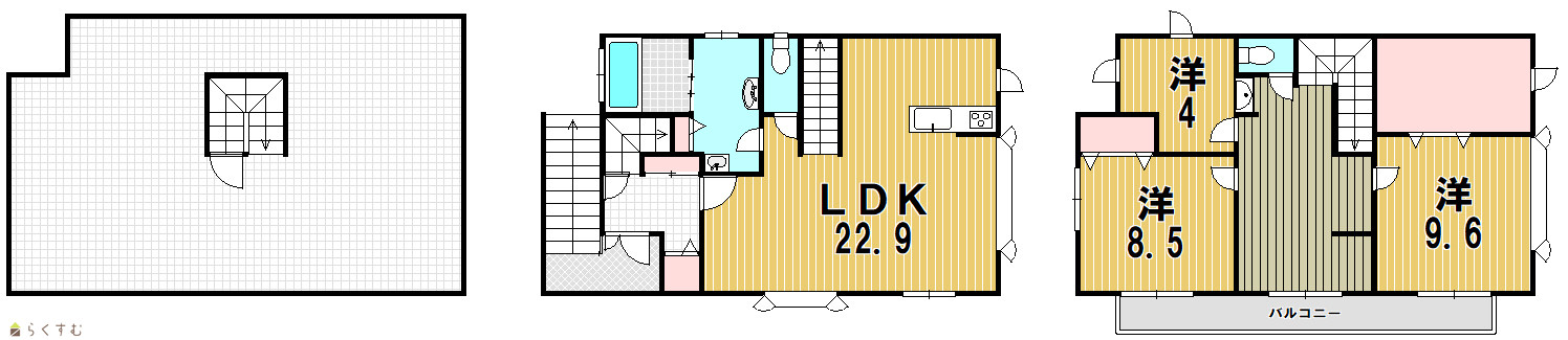 3LDK (洋室:4.3、8.5、9.6) LDK22.9 |