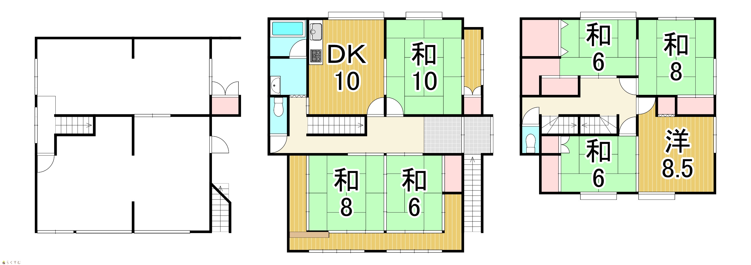 7DK (和室:6畳、8畳、10畳、6畳、6畳、8畳) (洋室:8.5) DK10 |