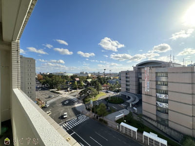南面がバルコニーに面して明るく開放的はリビングダイニング♪ バルコニーからは白山神社、陸上競技場が見下ろせます♪