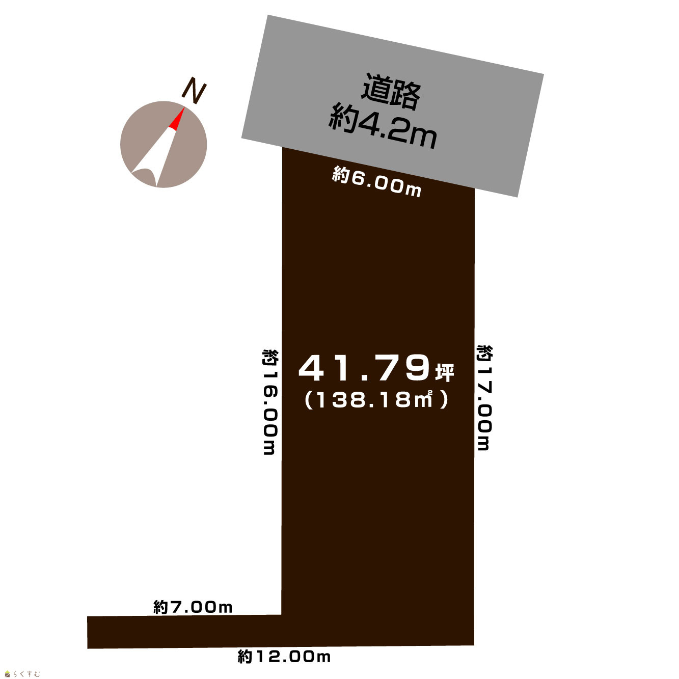 | 形状 | 間口 6.0m × 奥行 16.0m | 道路 | 公道 北 幅員6.0m |