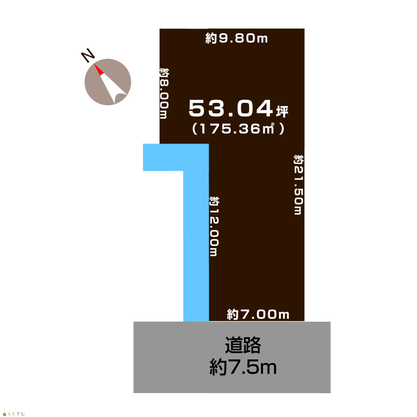 | 形状 | 間口 7.0m × 奥行 21.5m | 道路 | 公道 南 幅員7.5m |