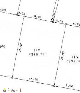| 形状 | 間口 14.1m × 奥行 20.4m | 道路 | 市道 関原251号線(幅員7.7m) |
