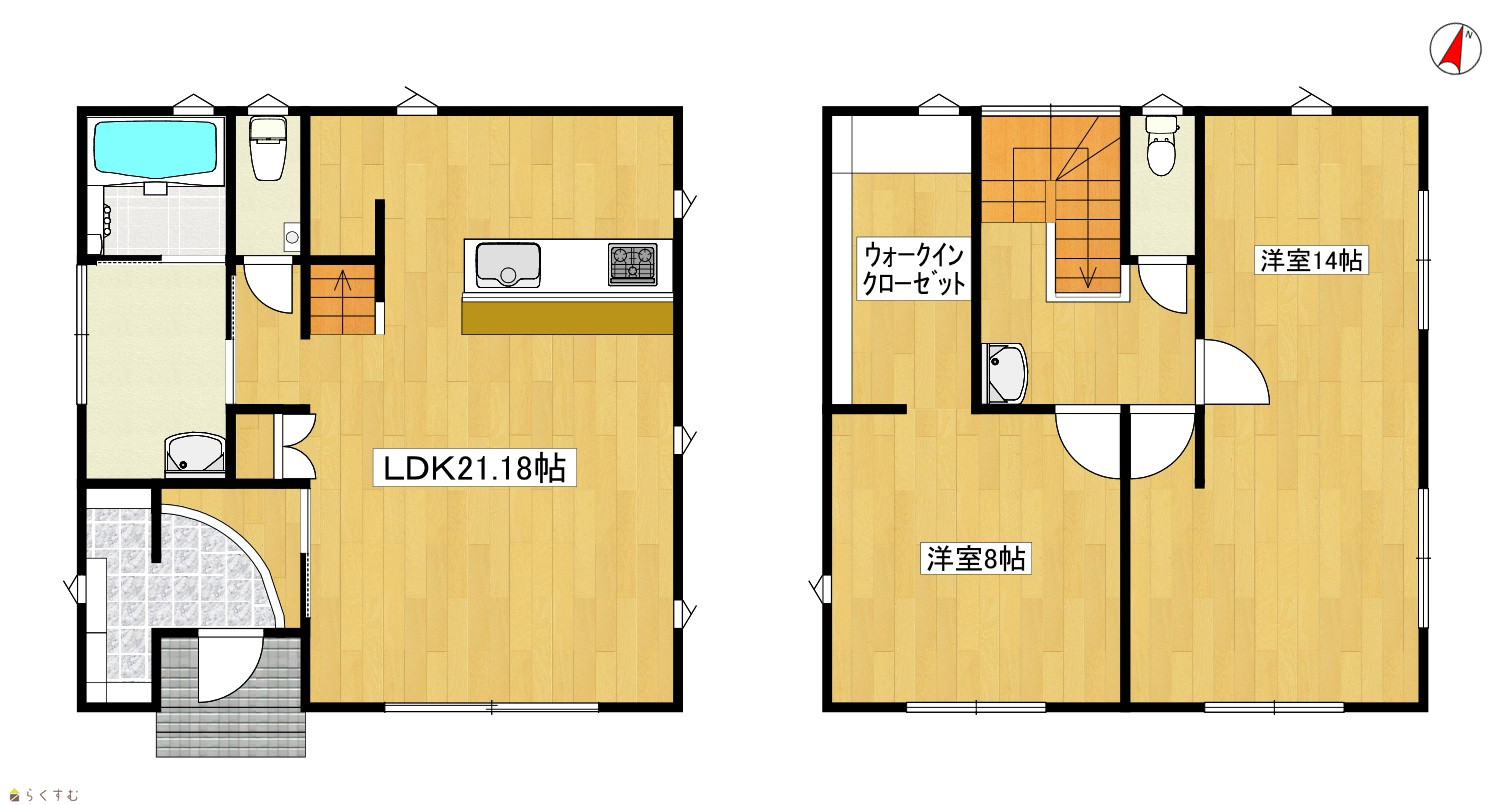 2LDK (洋室:8、14) LDK21 2台分のカーポートの他に敷地内2台駐車可能 |