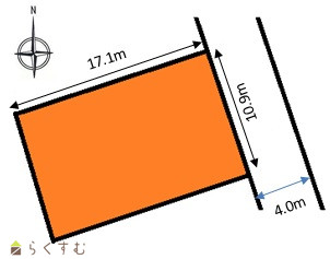 | 形状 | 間口 10.9m × 奥行 17.1m | 道路 | 北東側:市道4m(位置指定道路) |