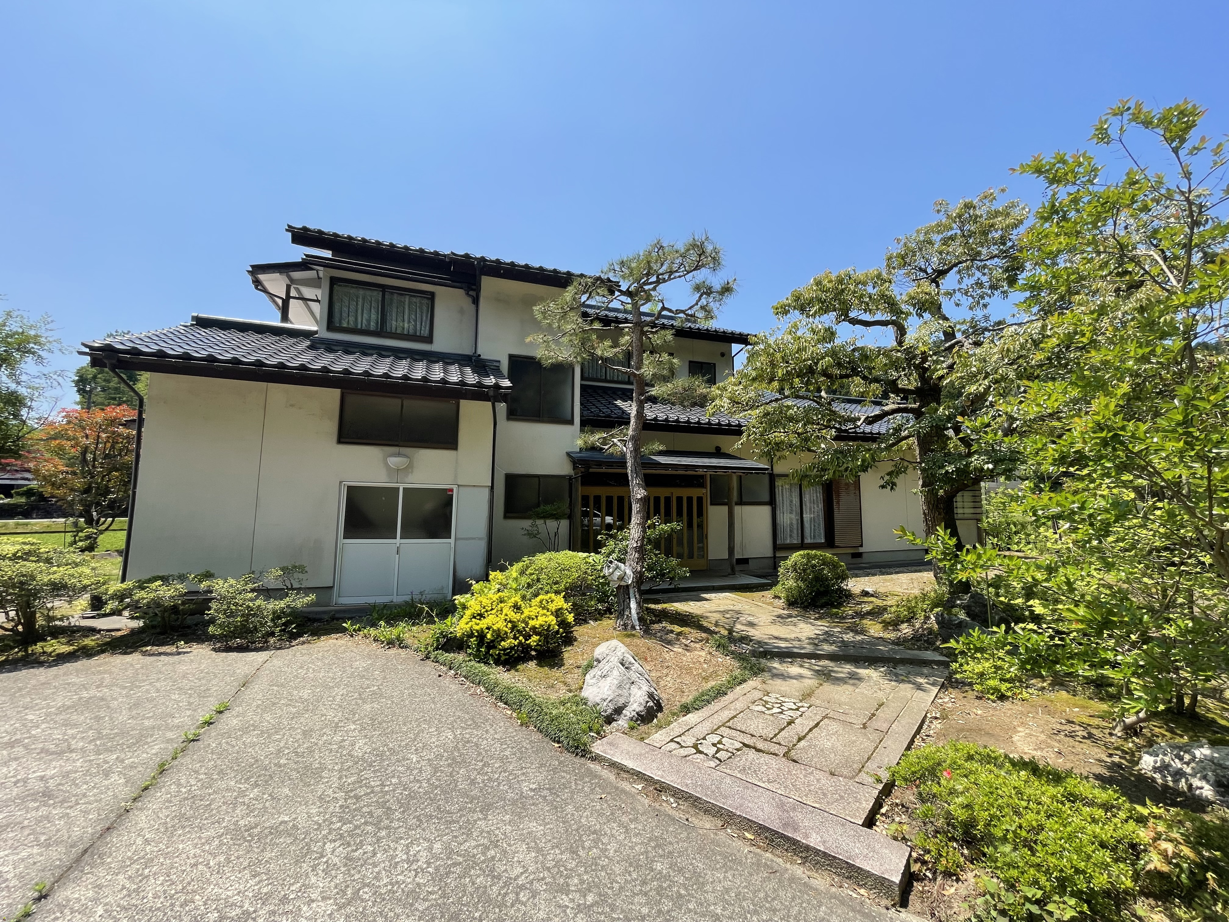 出雲崎町川西。風情豊かな庭を望む、9DKの中古住宅。敷地内大型車庫・作業所あり。