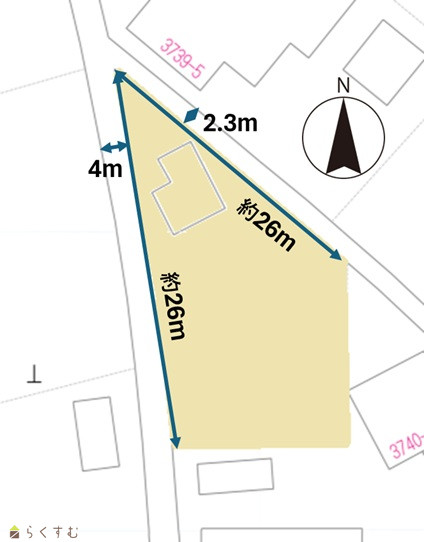 | 形状 | 間口 26m | 道路 | 西:市道幅員4m 東:市道幅員2.3m |