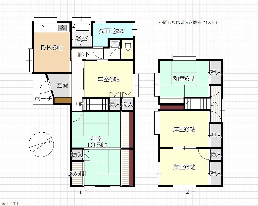 5DK (和室:10.5畳、6畳) (洋室:6、6、6) DK6 |