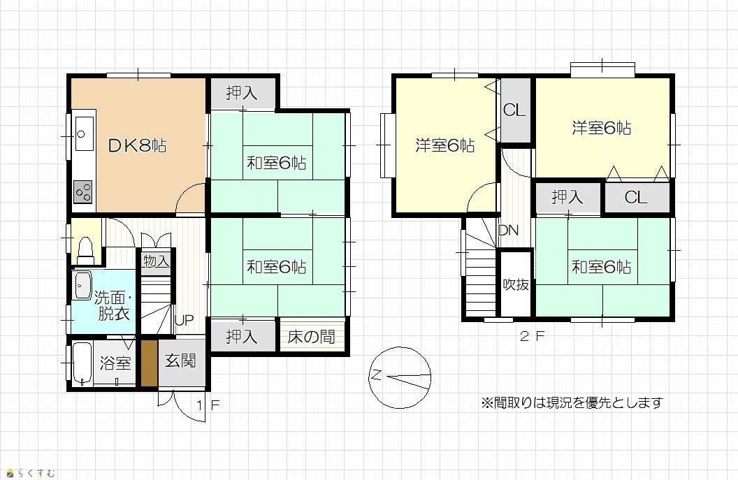5DK (和室:6畳、6畳、6畳) (洋室:6、6) DK8 |