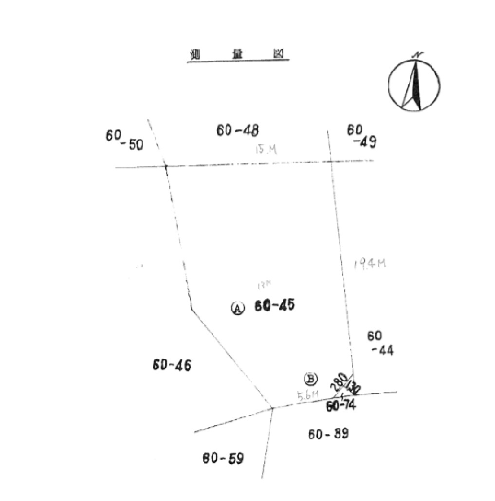 | 形状 | 間口 19.4m × 奥行 14.6m | 道路 | 東側:市道 5.9m |