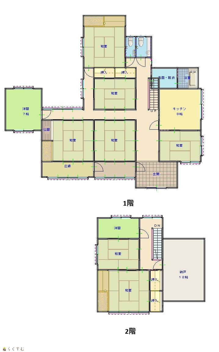 9DK (和室:8畳、8畳、8畳、6畳、6畳、6畳、6畳) (洋室:7、4) DK8 |