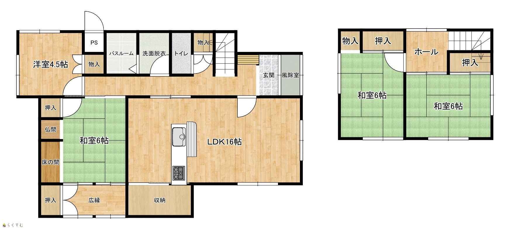 4LDK (和室:6畳、6畳、6畳) (洋室:4.5) LDK16 |