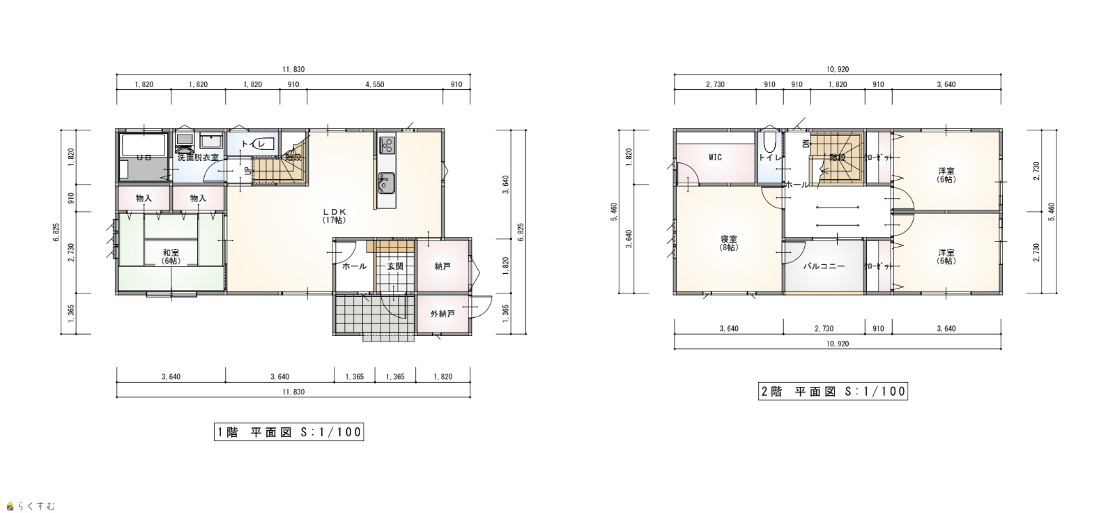 | 建物面積 | 1階 63.77㎡/ 2階 54.65㎡/ 計 118.42㎡ /35.82坪 | ||
