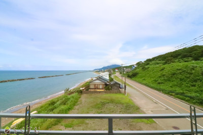 部屋から日本海を一望できます!ベランダからは弥彦山も!角部屋の1LDK、ペット可(細則による制限有)、夏場はマンション内のプールで楽しめます!(令和6年度は7月下旬から約1か月)