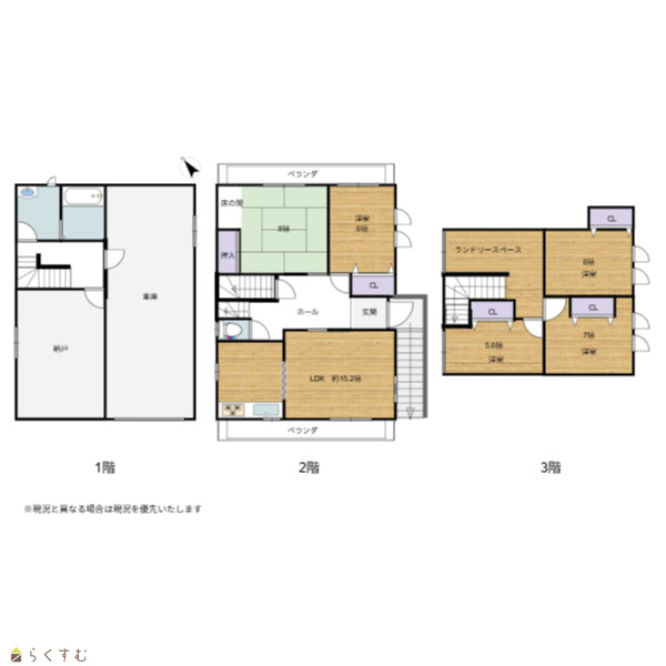 5LDK (和室:8.0畳) (洋室:7.0、6.0、6.0、5.8) 15.2 |