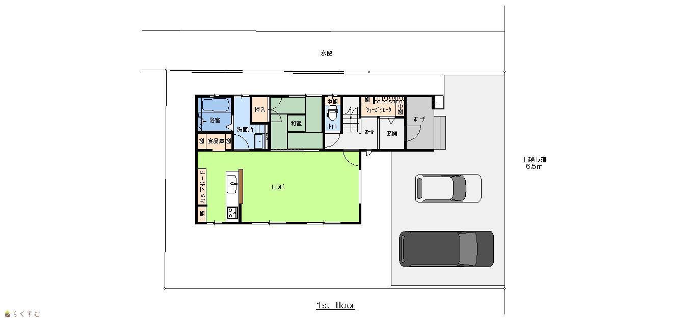 | 形状 | 間口 10m × 奥行 8m | 道路 | 東側6.5M上越市道 |