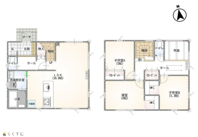 3LDK (洋室:6.0、5.3、5.0) LDK18.8 |
