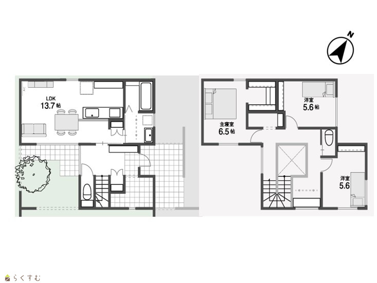 3LDK (洋室:6.5、5.6、5.6) LDK13.7 |