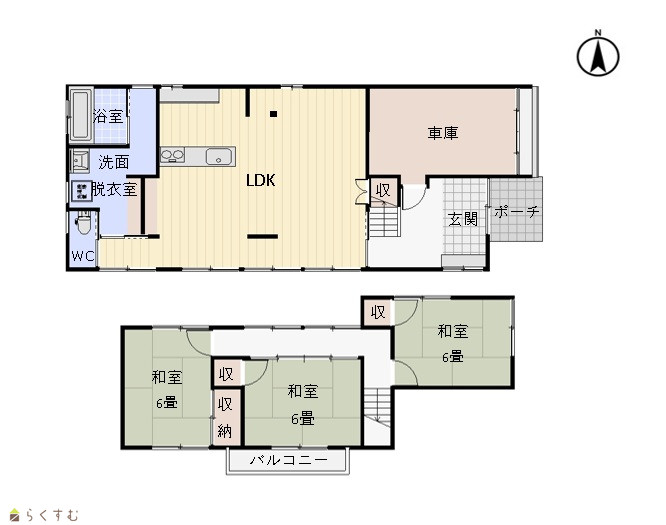 3LDK (和室:6畳、6畳、6畳) LDK 納戸あり |
