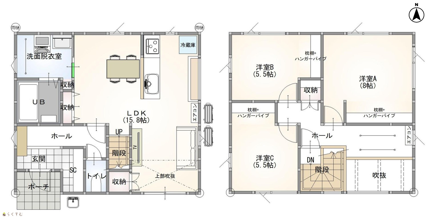 3LDK (洋室:8、5.5、5.5) LDK15.8 |