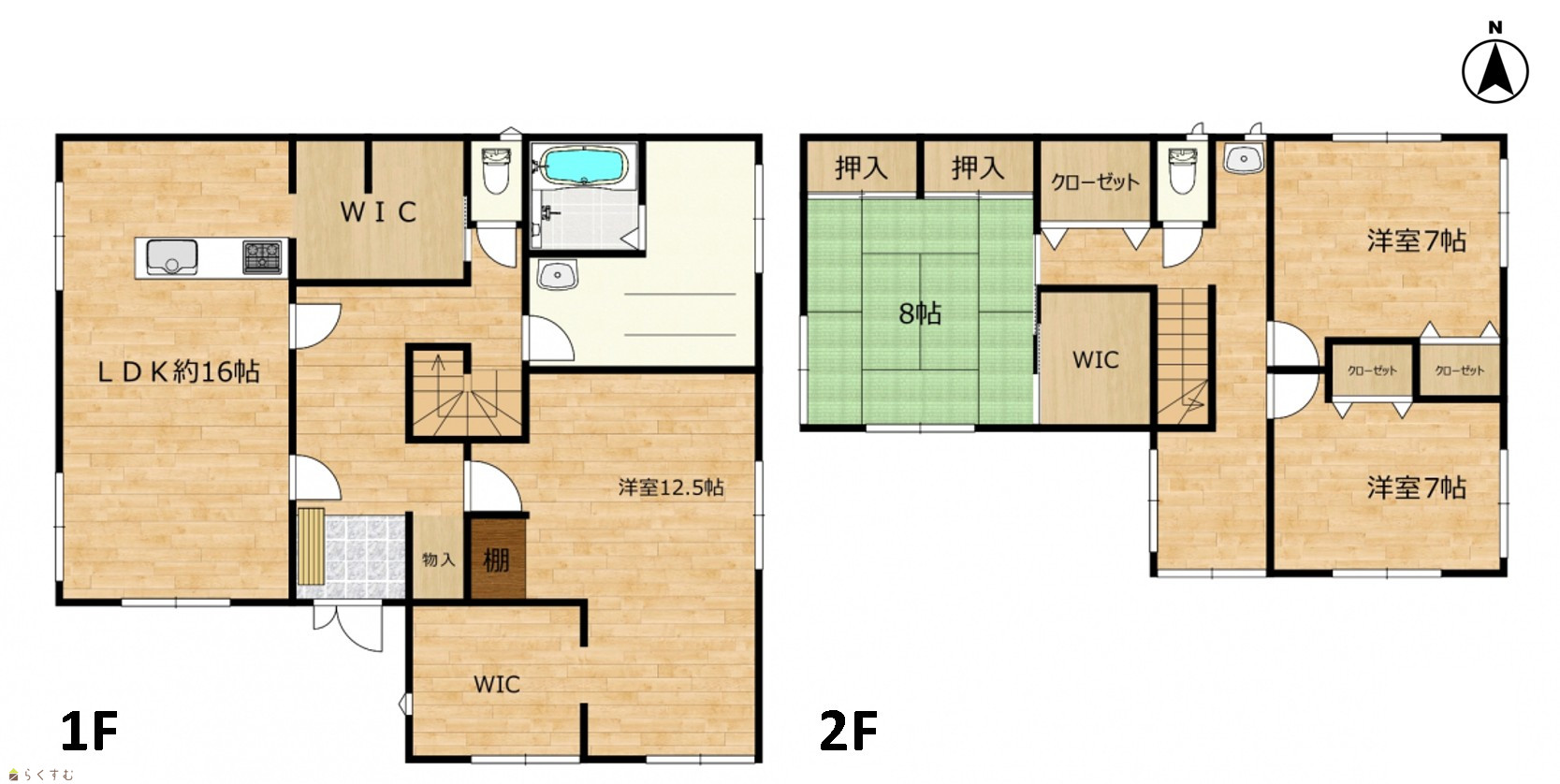 4LDK (和室:8畳) (洋室:12.5、7、7) LDK16 |