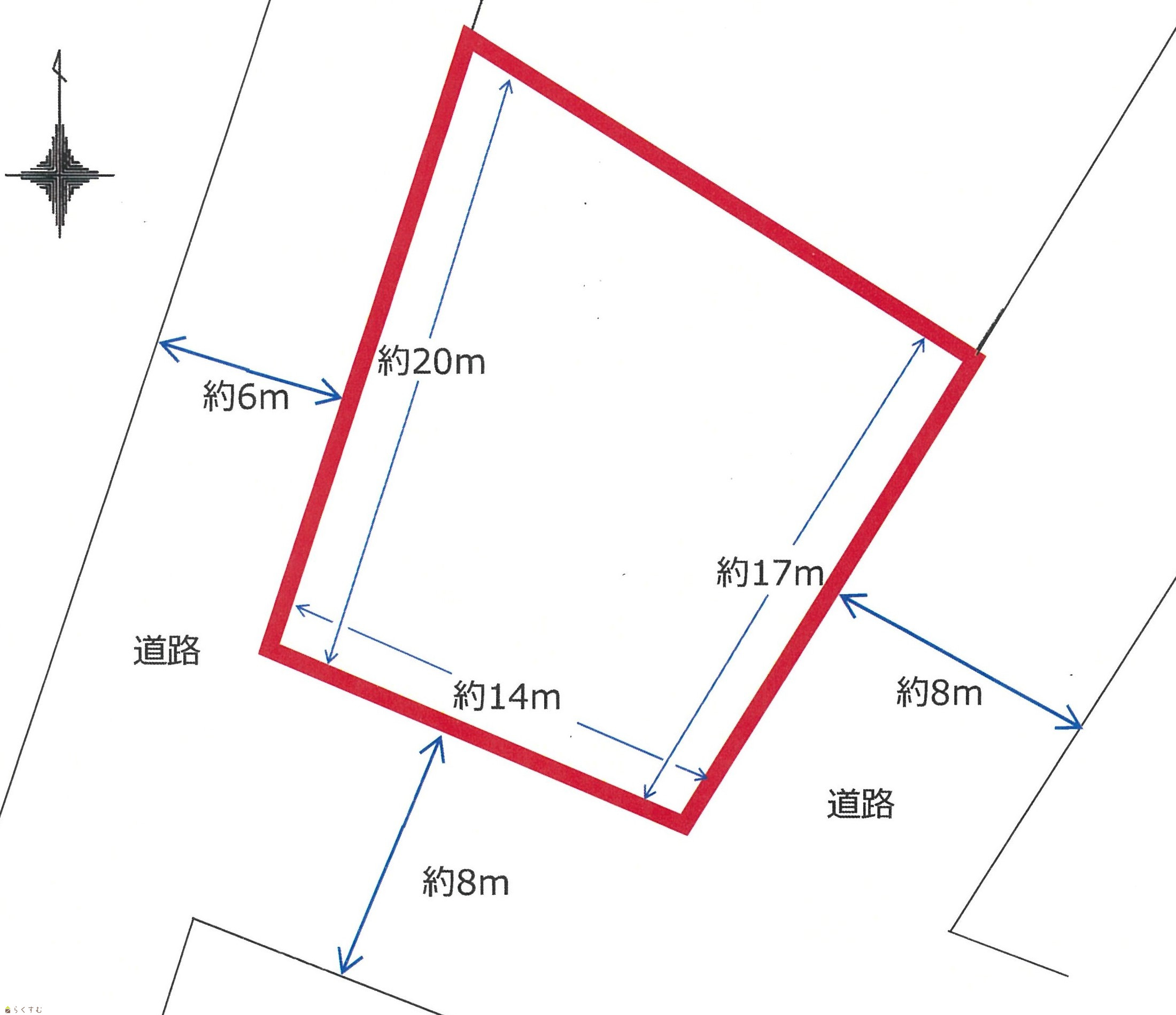 | 形状 | 間口 14m × 奥行 17m | 道路 | 上越市道 南8m、東8m、西6m |