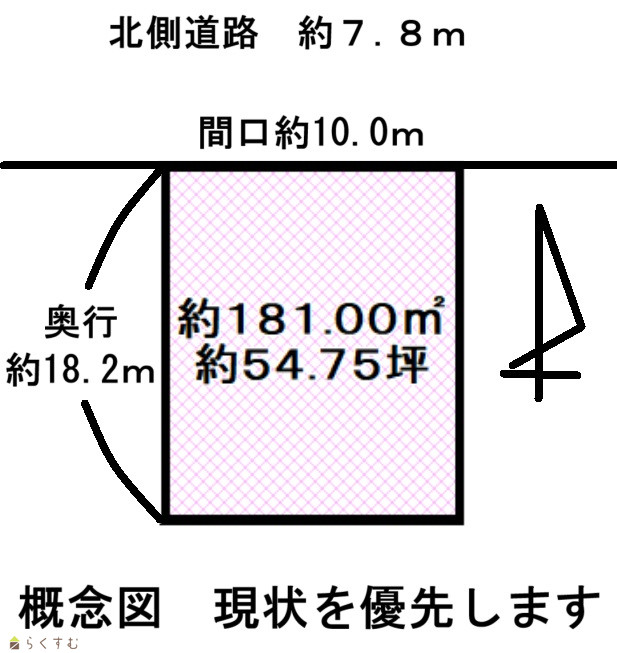 | 形状 | 間口 10m × 奥行 18.2m | 道路 | 北側約7.8m |