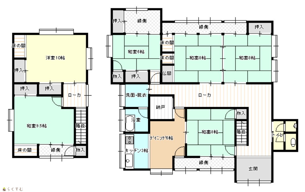 6DK (和室:9.5畳、8畳、8畳、8畳、6畳) (洋室:10) DK7 |
