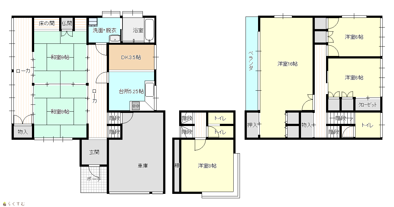 6DK (和室:8畳、8畳) (洋室:16、8、6、6) DK8 |