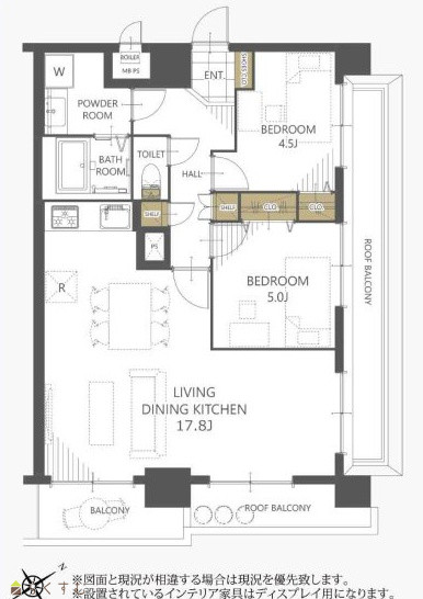 2LDK (洋室:5、4.5) LDK17.8 |