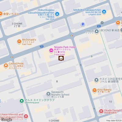 | 交通 | 駅:上越新幹線 新潟駅から徒歩9分、バス:笹口から徒歩5分 | ||