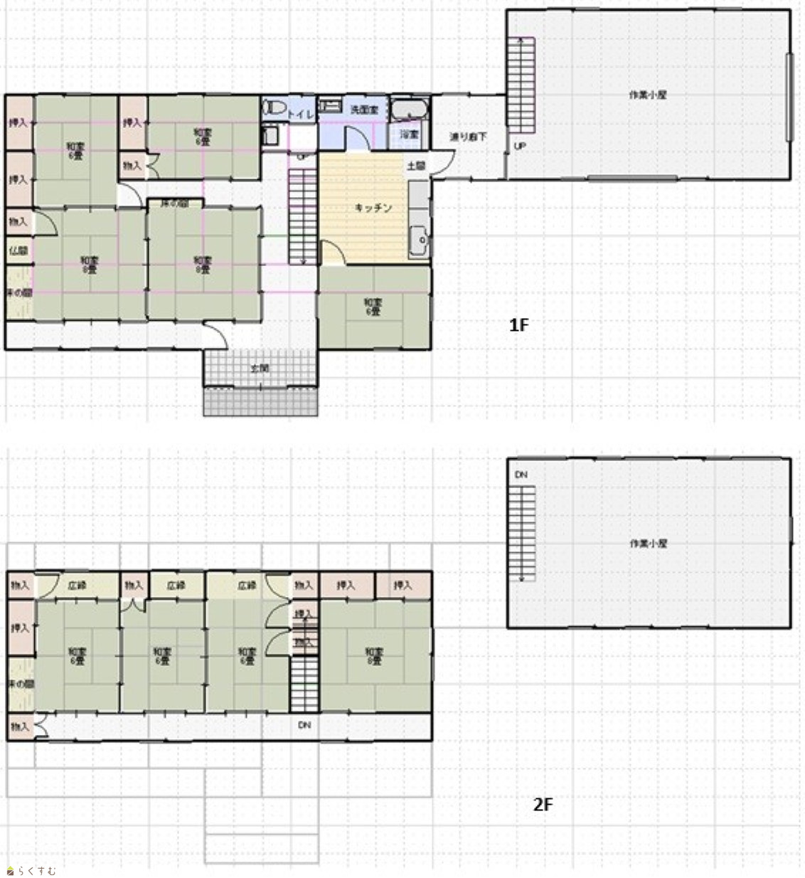 | 間取り | 9DK (和室:8畳、8畳、8畳、6畳、6畳、6畳、6畳、6畳、8畳) | ||