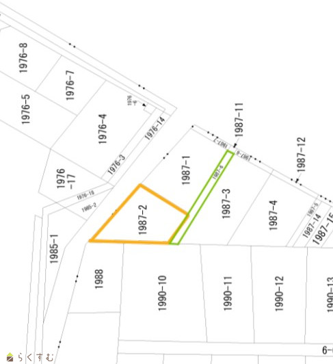 | 形状 | 間口 9.5m | 道路 | 前面土地(南側)を道路として申請が必要です。 |