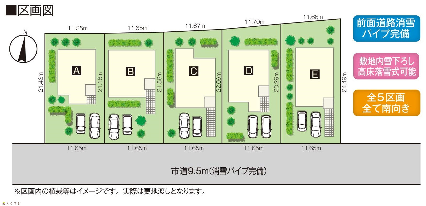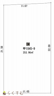 | 形状 | 間口 11.65m × 奥行 22.09m | 道路 | 南側9.5m |