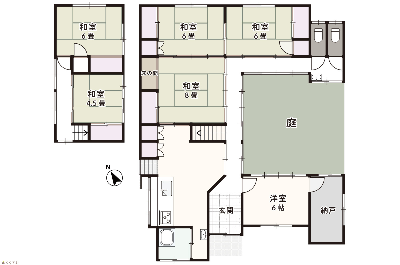 6DK (和室:8畳、7畳、6畳、6畳、4.5畳) (洋室:6) DK11.5 |