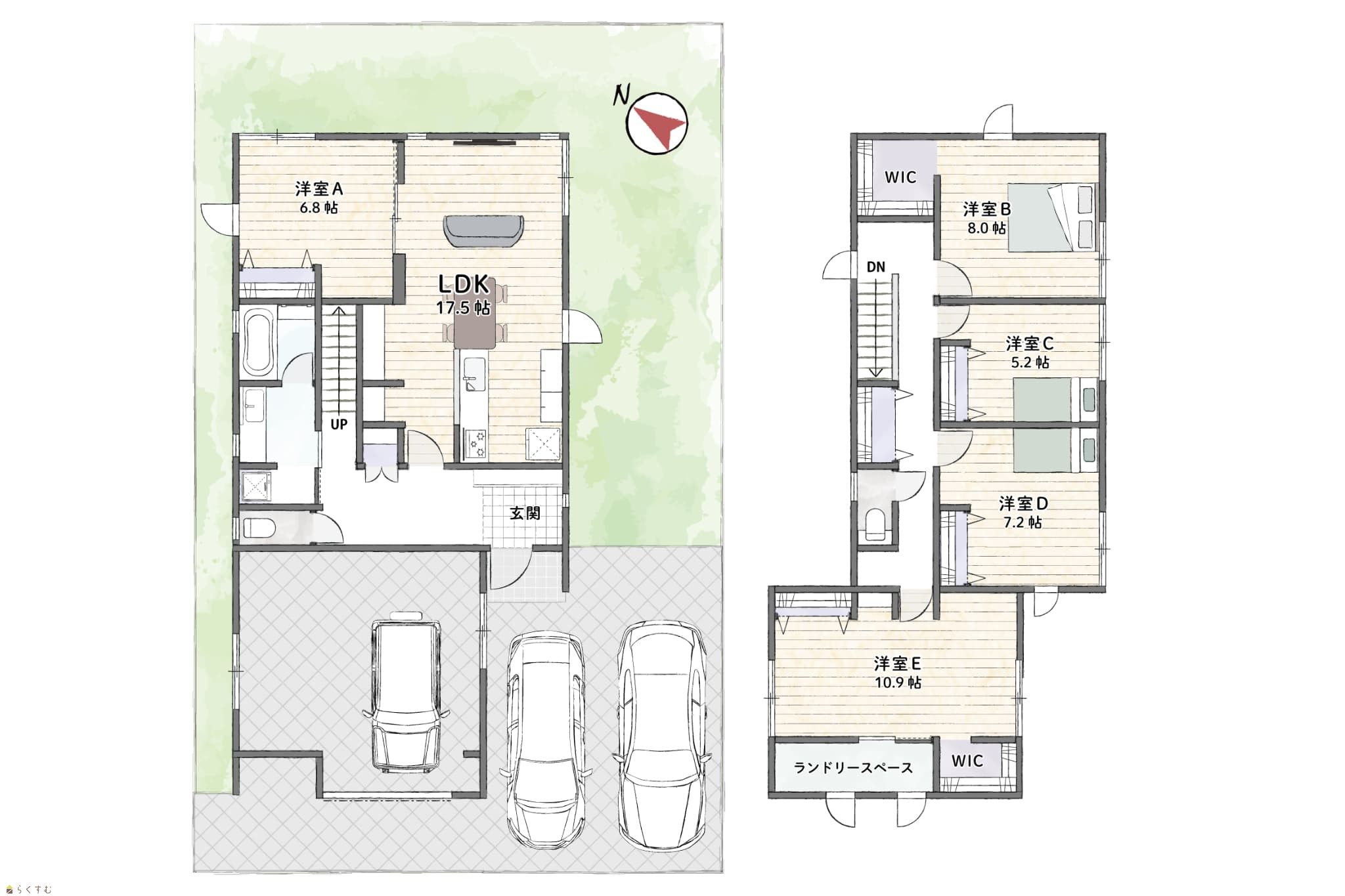 5LDK (洋室:6.8、8、5.2、7.2、10.9) LDK17.5 |