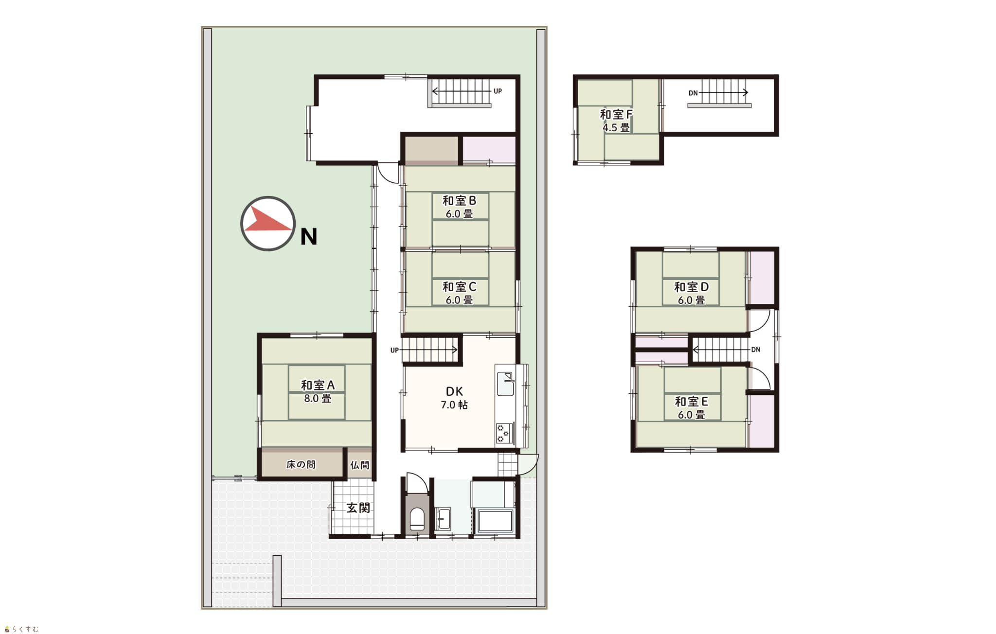 6DK (和室:8畳、6畳、6畳、6畳、6畳、4.5畳) DK7 |