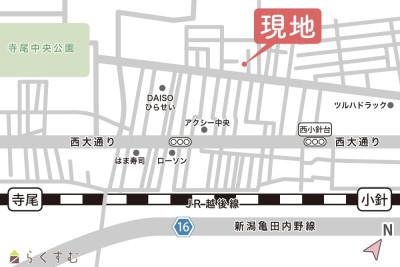 | 交通 | 駅:越後線 寺尾駅から徒歩16分、バス:松海が丘から徒歩6分 | ||