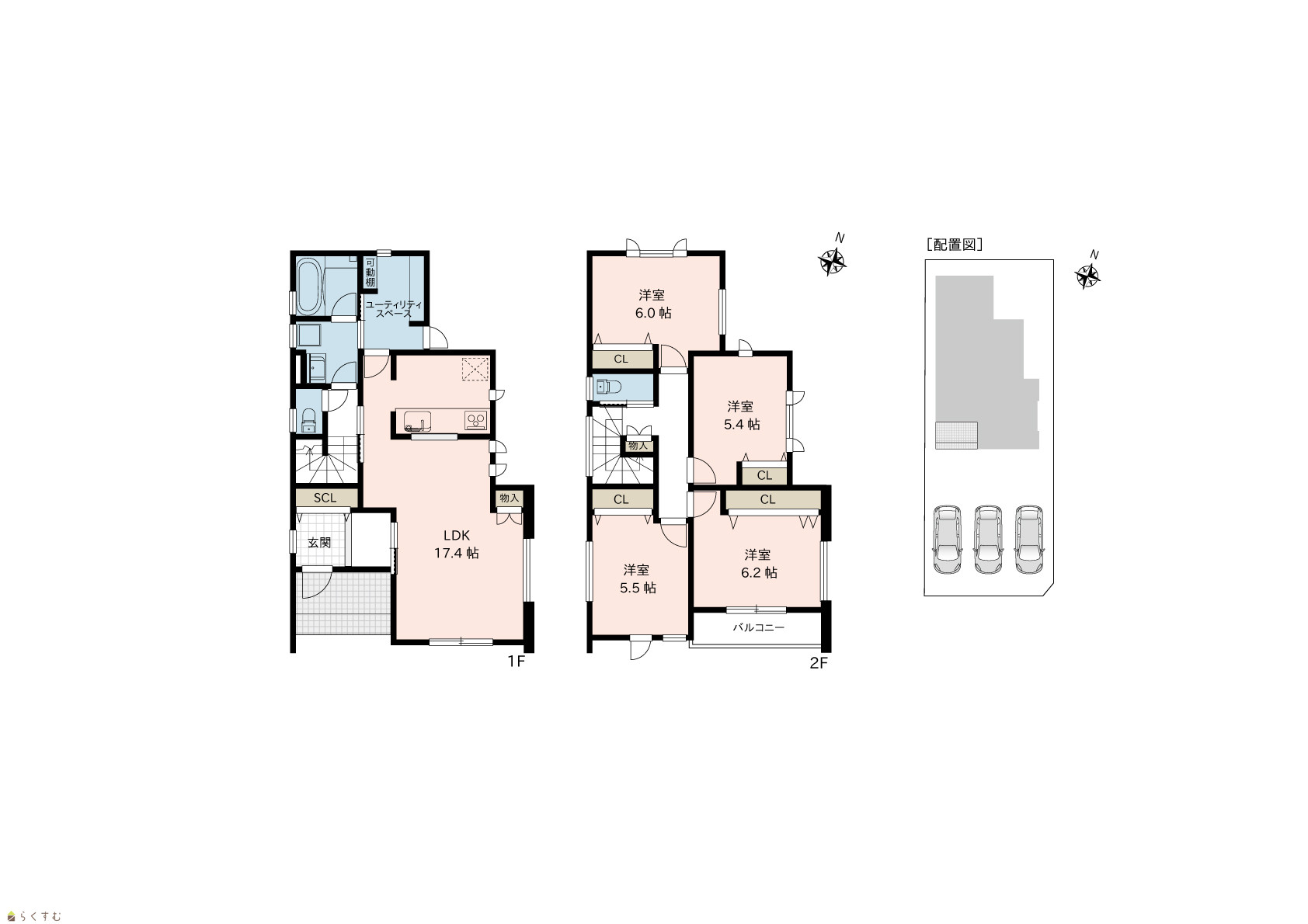 4LDK (洋室:6.2、6.0、5.5、5.4) LDK17.4 |