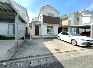 2017年築、敷地80坪の5LDK中古住宅。子供たちが遊んだり、家庭菜園ができるゆったりとした庭があります。