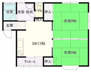 2DK (和室:6畳、8畳)、DK7.5
