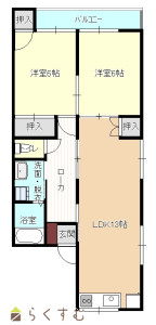 2LDK (和室:6畳、6畳)、LDK13帖