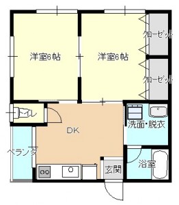 2DK (洋室:6、6)、DK