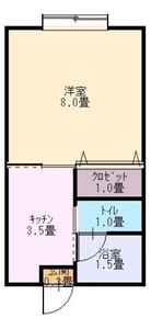 1K (洋室:8)、K、B・T別室/水洗トイレ/洗濯機置場/ユニットバス/給湯/シャワー/エアコン