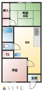 2DK (和室:6畳) (洋室:5)、DK