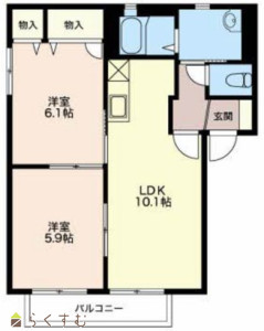 2LDK (洋室:6.1、5.9)、LDK10.1