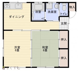 2DK (和室:6畳) (洋室:6)、DK5
