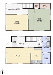 3K (和室:8畳) (洋室:6、6)、6帖洋-6帖洋-8帖和-K-(フリ-スペース)、B・T別室/水洗トイレ/洗面台/ウォシュレット/追い焚き機能/給湯//エアコン/電話設置可