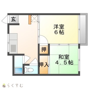 2DK (和室:4.5畳) (洋室:6)、DK6